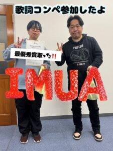 歌詞コンペに参加しました・・・・結果は・・・!? IMUA-Diary X Facebook LINE コピー 2025.10.21 AWANA主催の歌詞コンペに参加しました☺ ななななんと・・・最優秀賞取りました✌ 頑張って参加したが甲斐がありましたね♬ まだ詳細はオープンにはできませんが・・・ 最優秀賞を取ったTさんの実績となり、世の中に生み出される音楽となります!! 早く公開されるといいなぁ♬♬♬