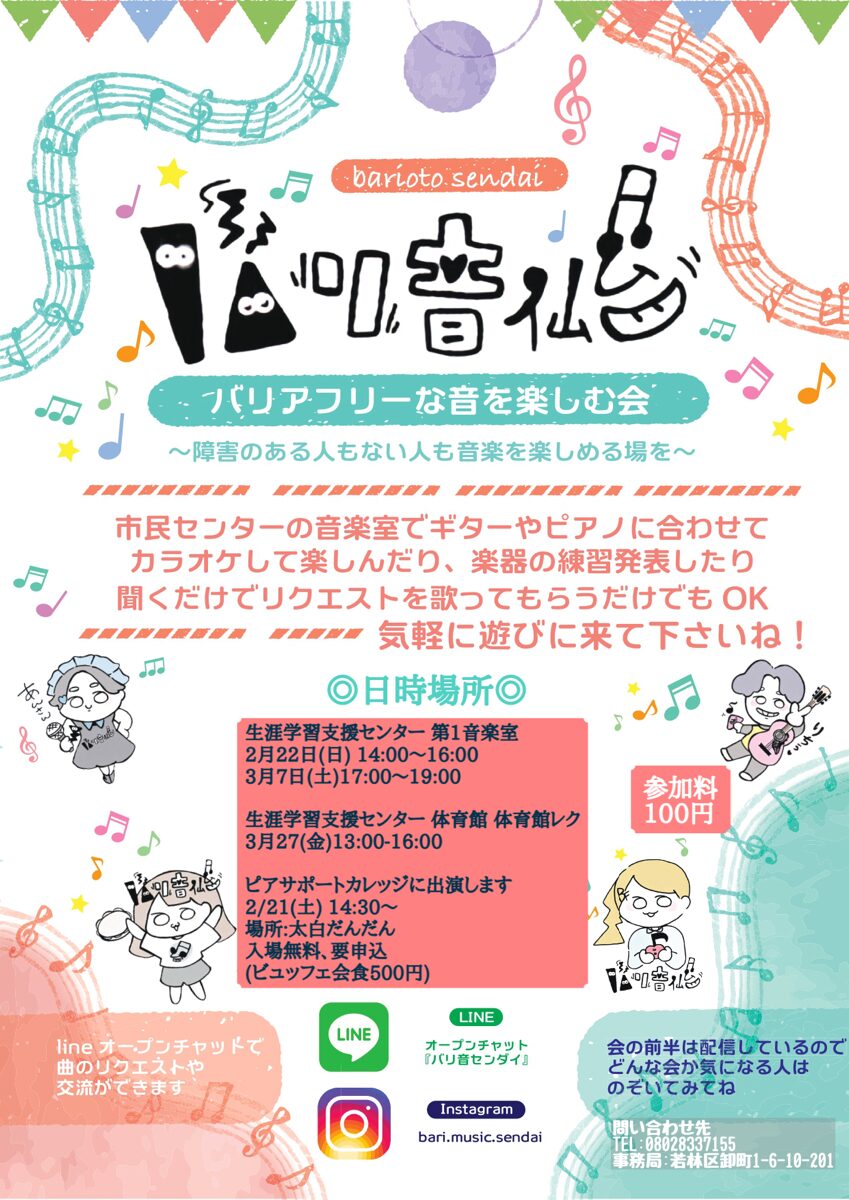 【おしらせ】バリ音仙台♫バリアフリーな音を楽しむ会♬